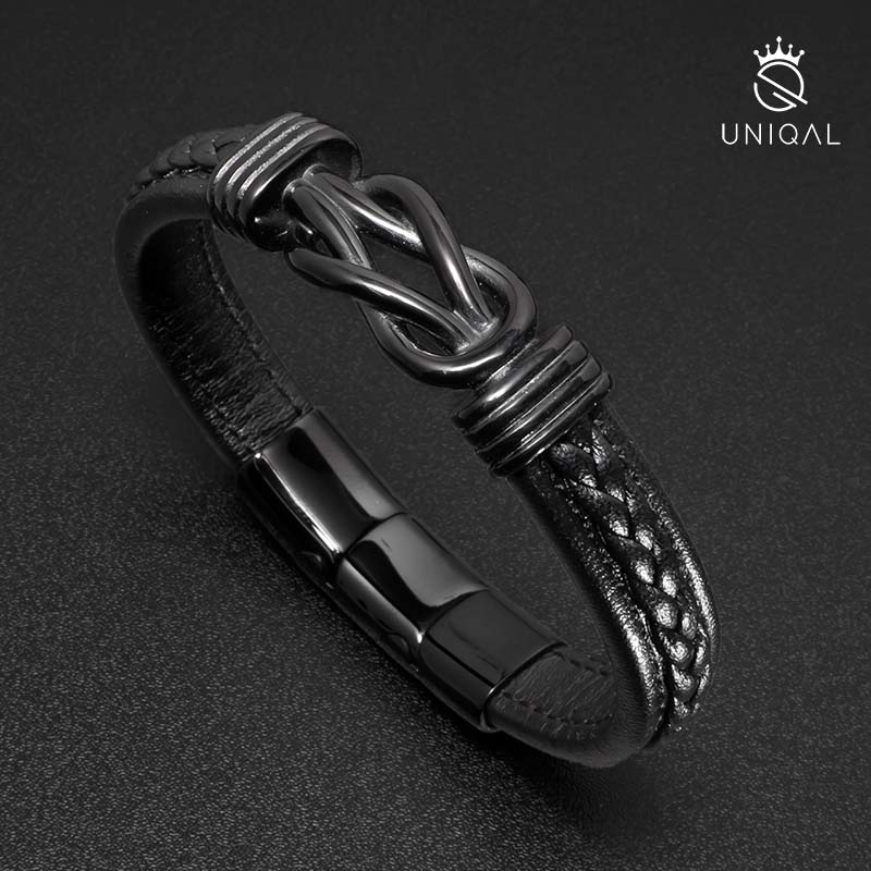 Das ETERNAL Lederarmband für Herren ist ein zeitloses und symbolträchtiges Accessoire, das einen Hauch von Eleganz und Stil verleiht. Hergestellt aus echtem schwarzen Rindleder, strahlt es Robustheit und Raffinesse aus. Das Armband ist aus einem einzigen Strang geflochten und verfügt über ein integriertes Unendlichkeitselement in Schwarz.